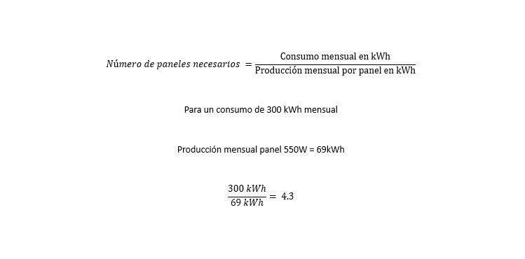 Considerando un uso diario de 10 horas, el consumo energético sería de 300 kWh mensual. Con paneles solares de 550W que generan 69 kWh mensual, el cálculo sería el siguiente: